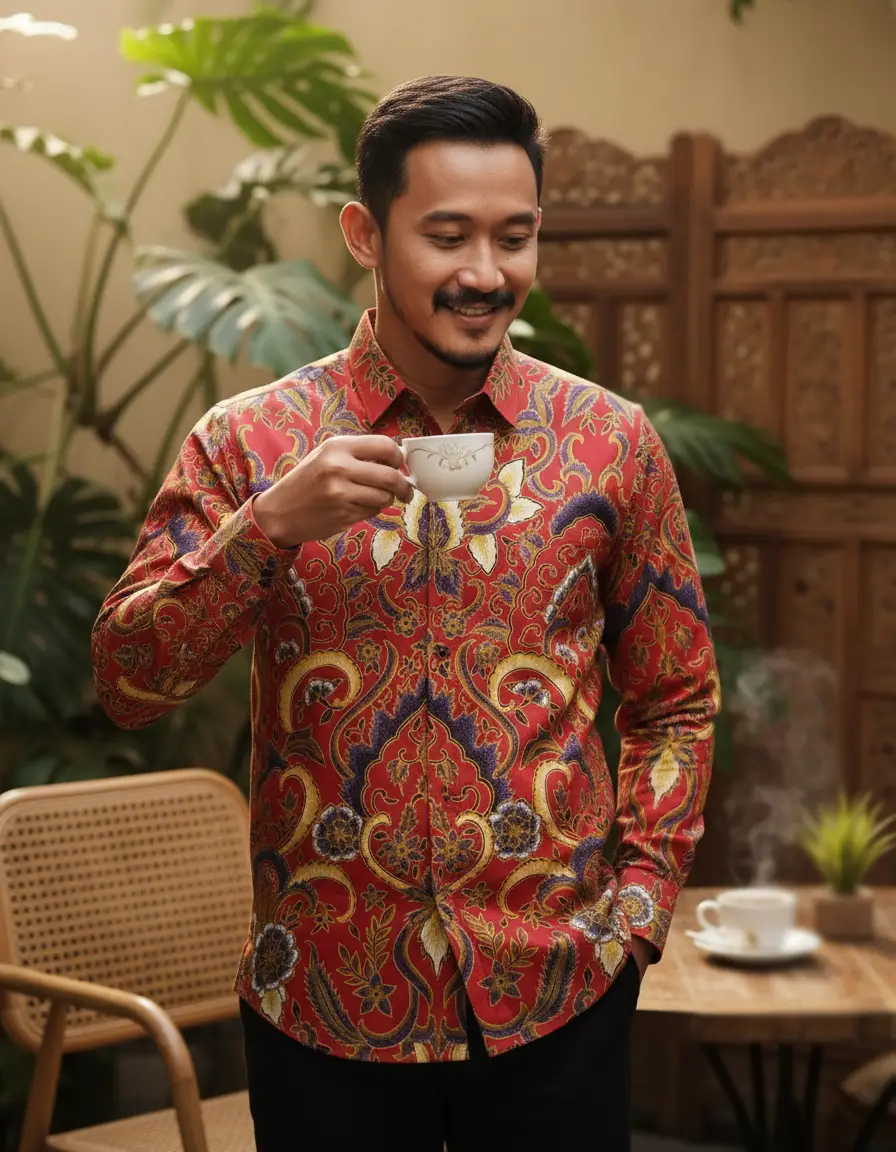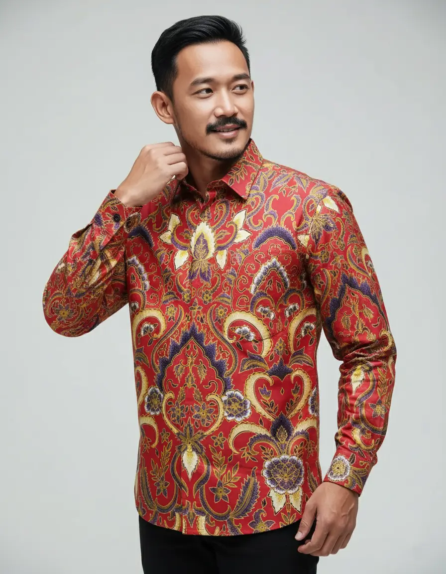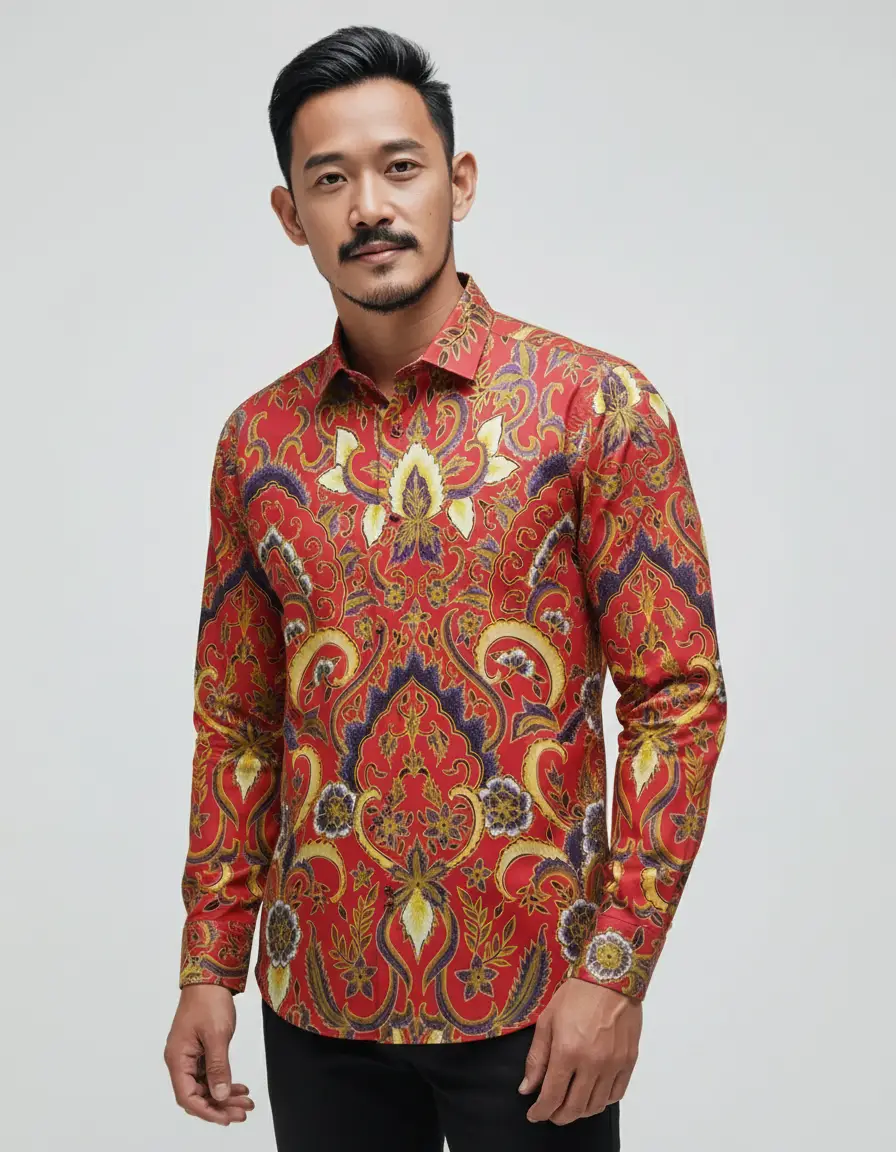 Merah bukan sekadar warna, ia adalah denyut semangat dan keberanian. Inilah perasaan yang ingin kami titipkan dalam setiap helai kain “Bara Kencana” ini, sebuah karya yang kami harap dapat membangkitkan rasa percaya diri.