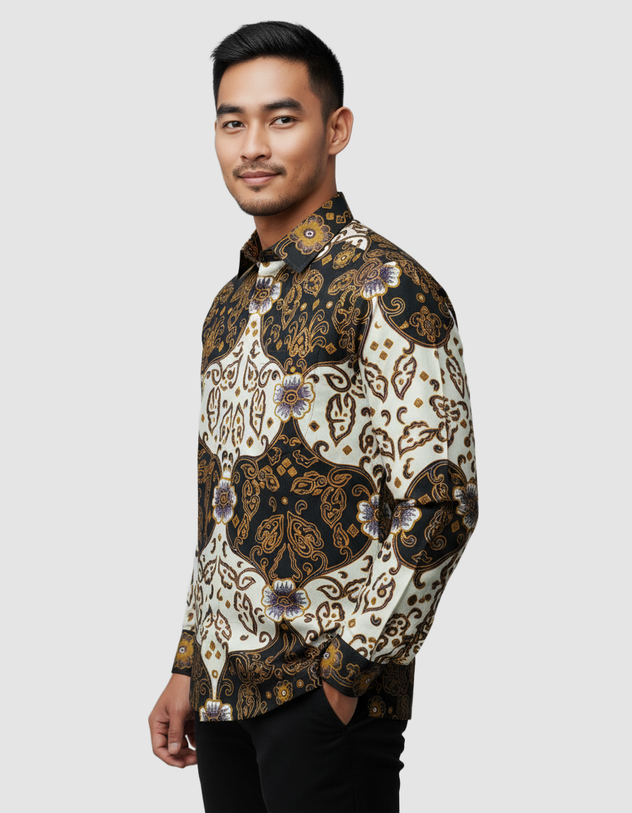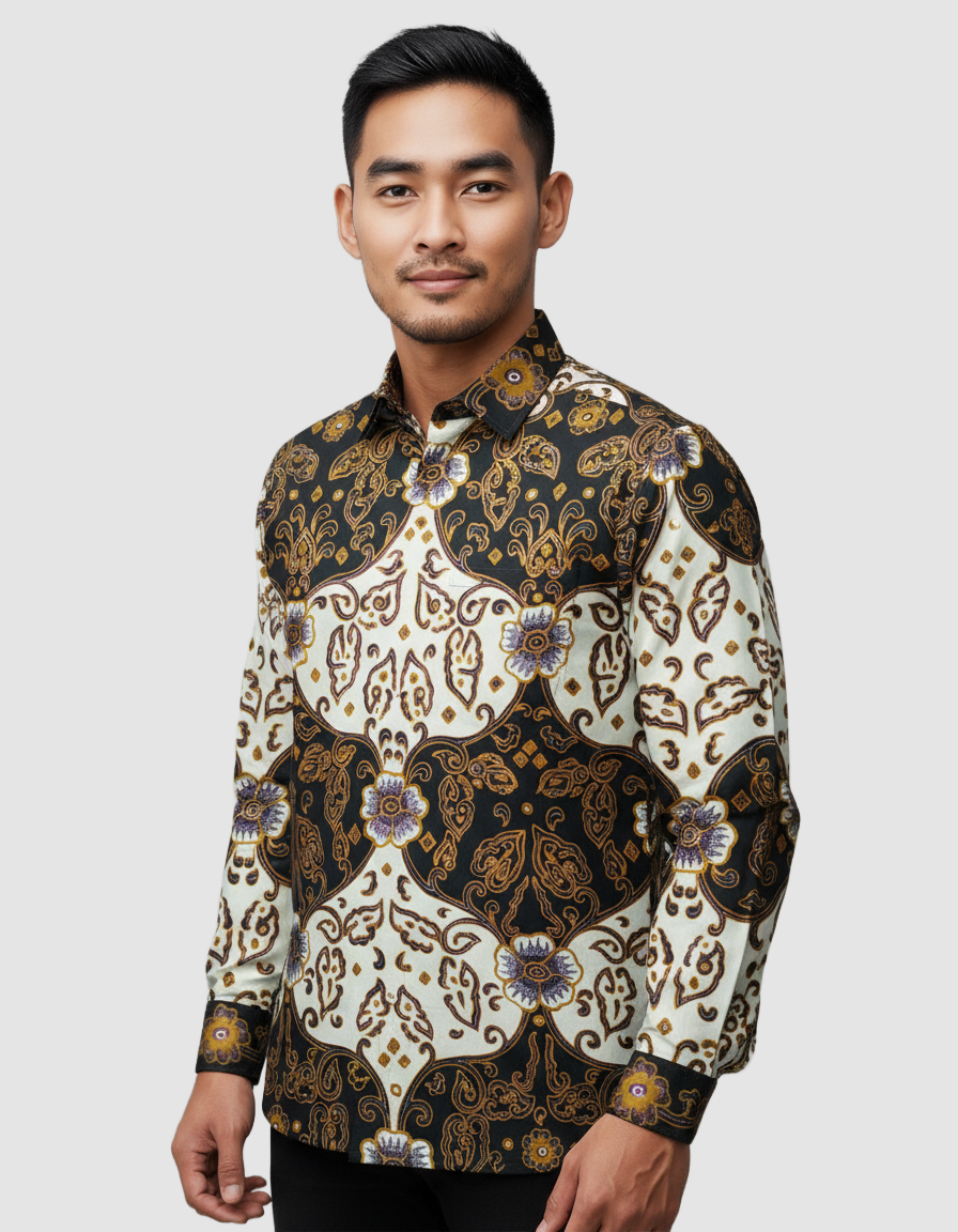 Setiap detail bunga dan sulur yang ditorehkan di atas kain katun primissima yang halus ini adalah doa. Sebuah harapan agar pemakainya senantiasa menemukan ketenangan batin dan kebijaksanaan dalam menghadapi setiap putaran takdir.