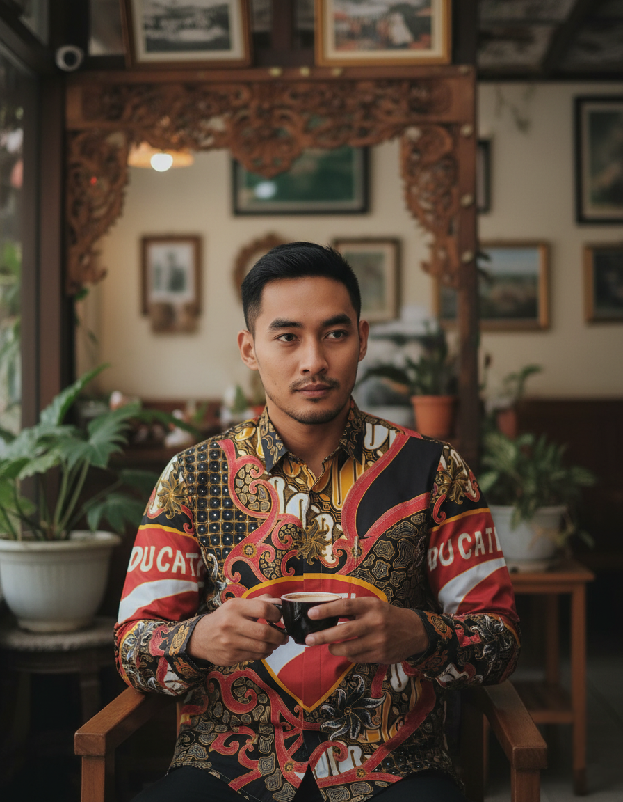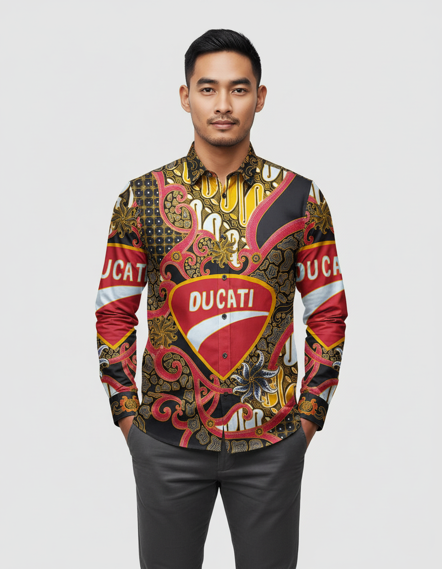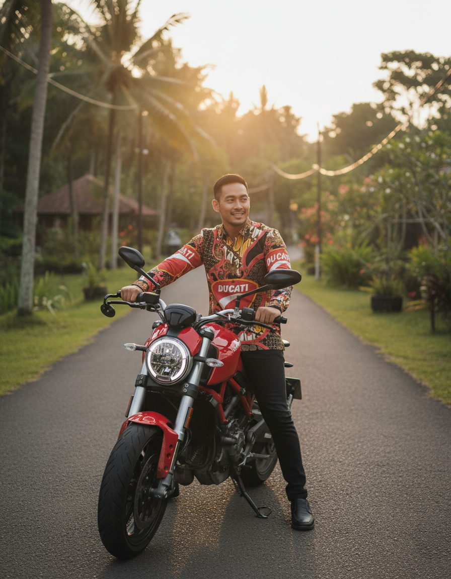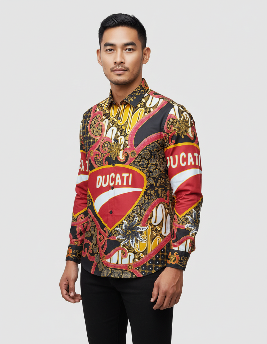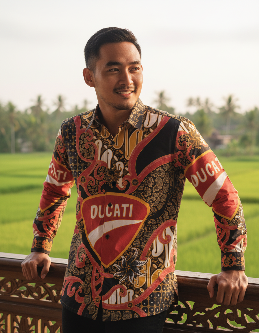 Ada kalanya semangat modernitas dan kehangatan tradisi bertemu dalam satu helai kain. Inilah yang kami tuangkan dalam koleksi “Ducati Corso”, sebuah karya yang lahir dari kekaguman pada presisi dan gairah.