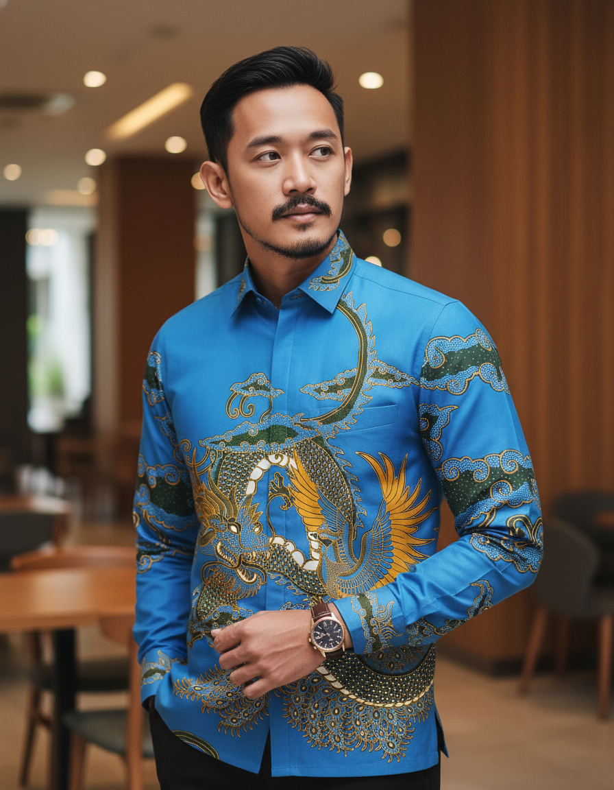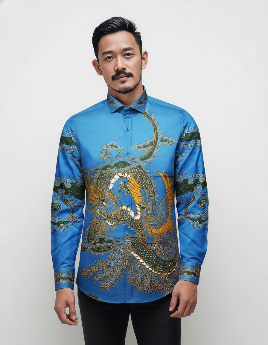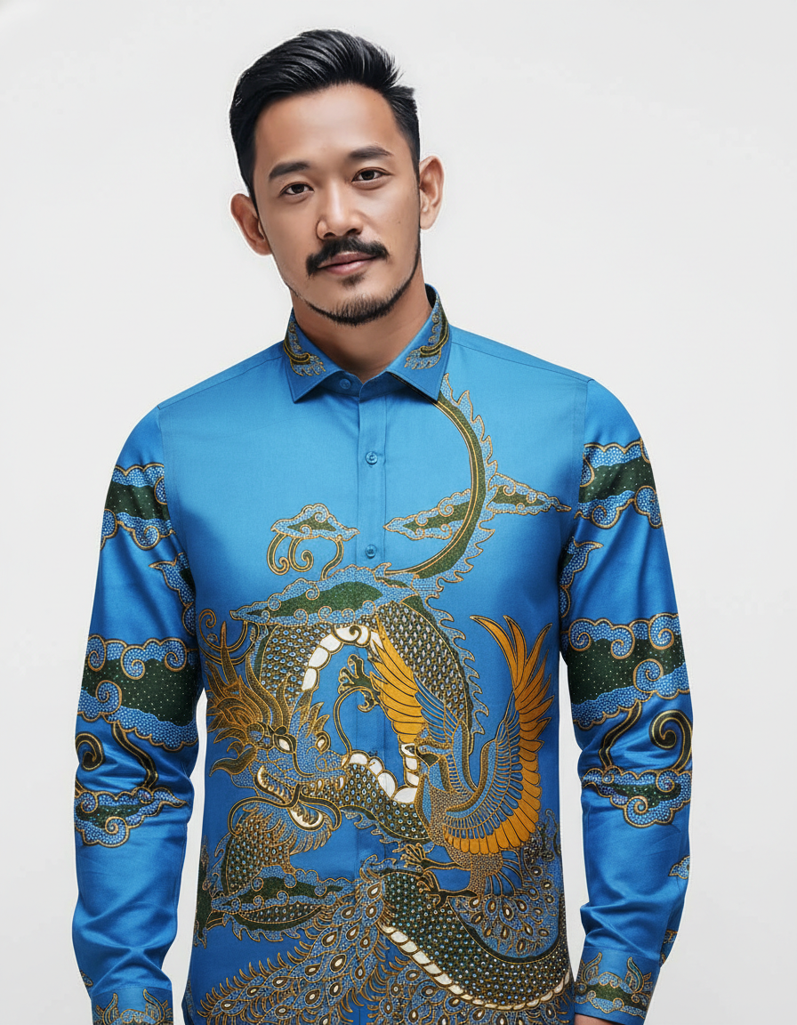Sebuah kain yang melukiskan harmoni sang naga dan keanggunan sang feniks dalam balutan warna biru yang menenangkan. Sebuah simbol keseimbangan untuk menemani langkah Anda.