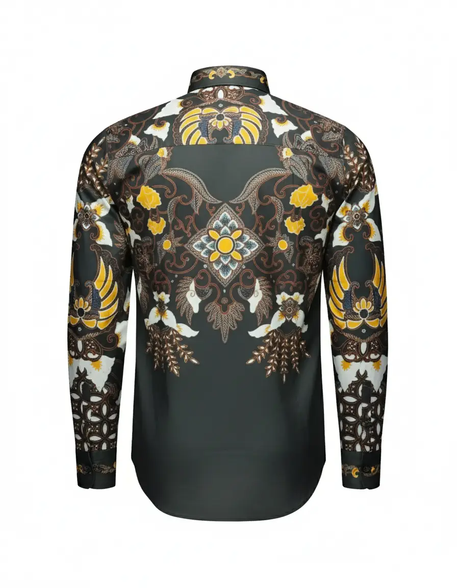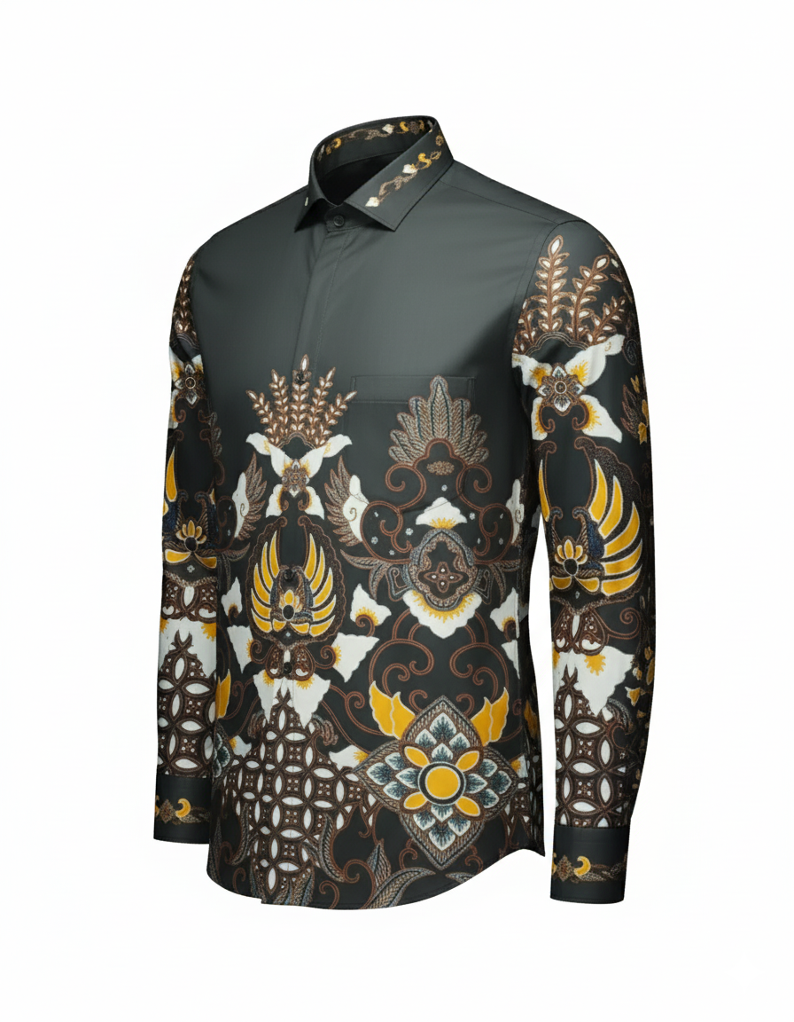 Kami meletakkan motif garuda dalam posisi yang mapan dan seimbang. Ini adalah simbol dari kekuatan yang berakar, wibawa yang tidak perlu ditonjolkan, namun terasa kehadirannya. Ia adalah penjaga yang bijaksana. Dipadu dengan detail klasik di sekelilingnya, kami titipkan doa agar kebijaksanaan itu senantiasa membawa kebaikan.