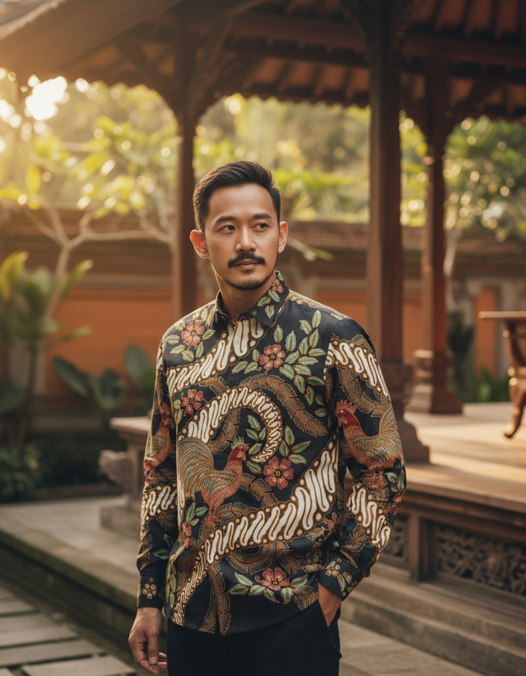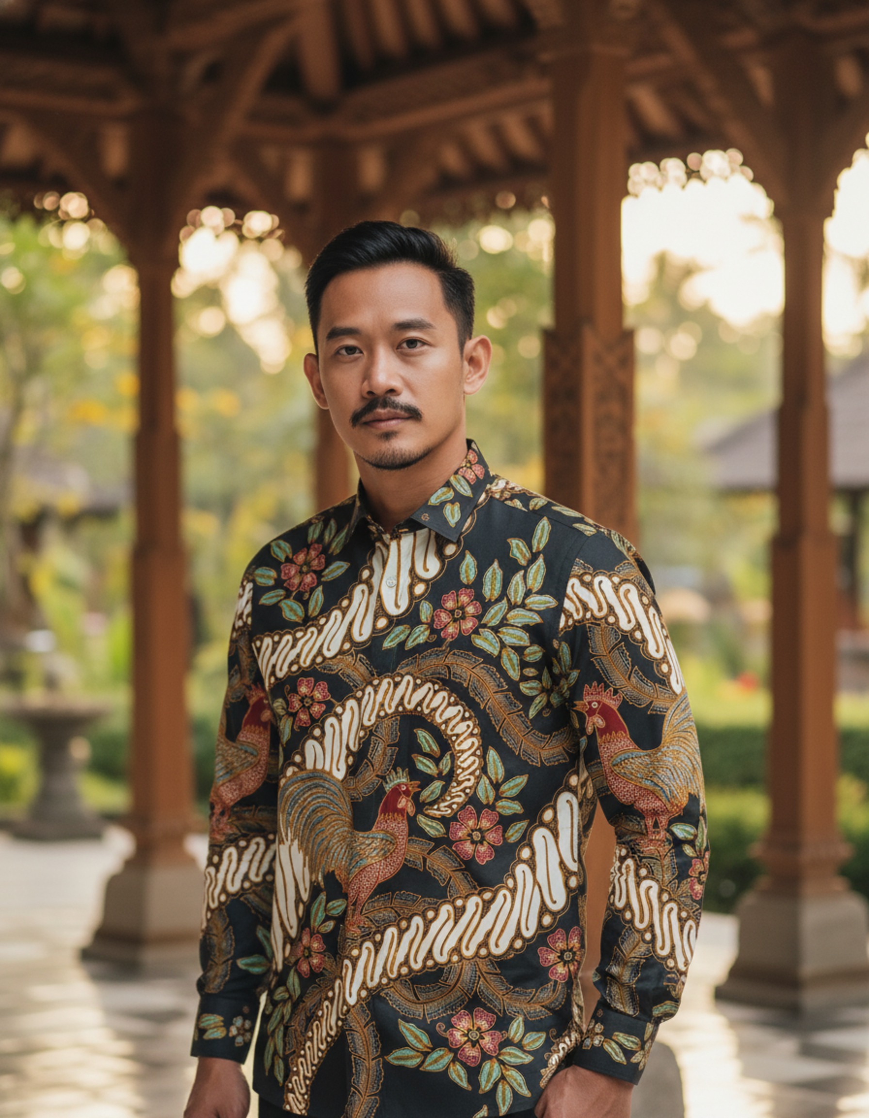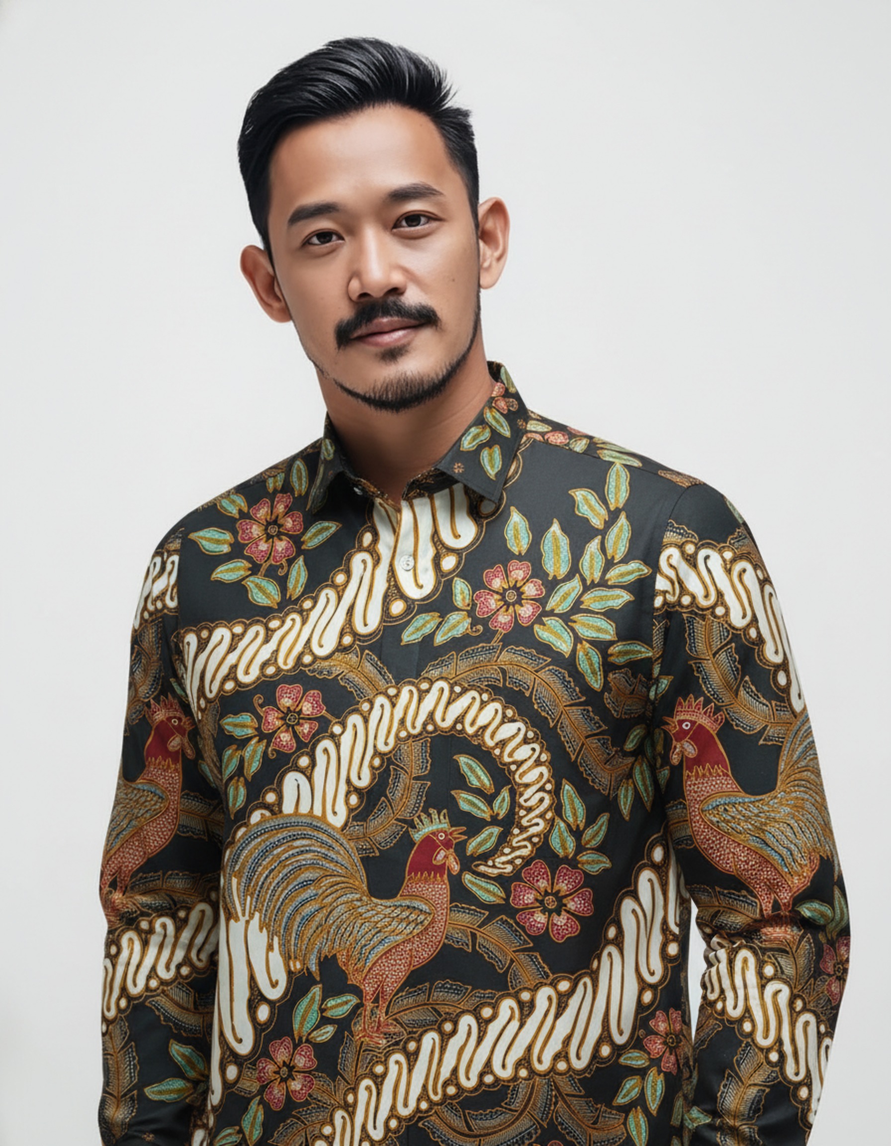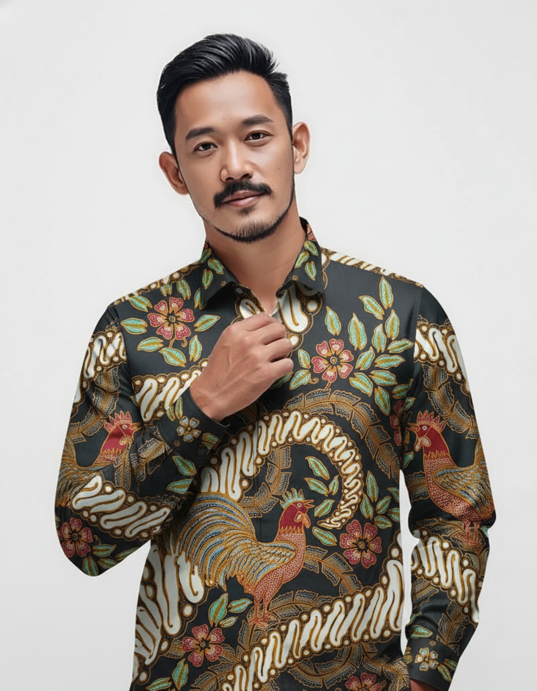 Goresan motif ‘Jago Wisesa’ di atas latar hitam pekat ini adalah cerita tentang semangat baru dan wibawa yang tenang, siap menemani setiap langkah Anda.