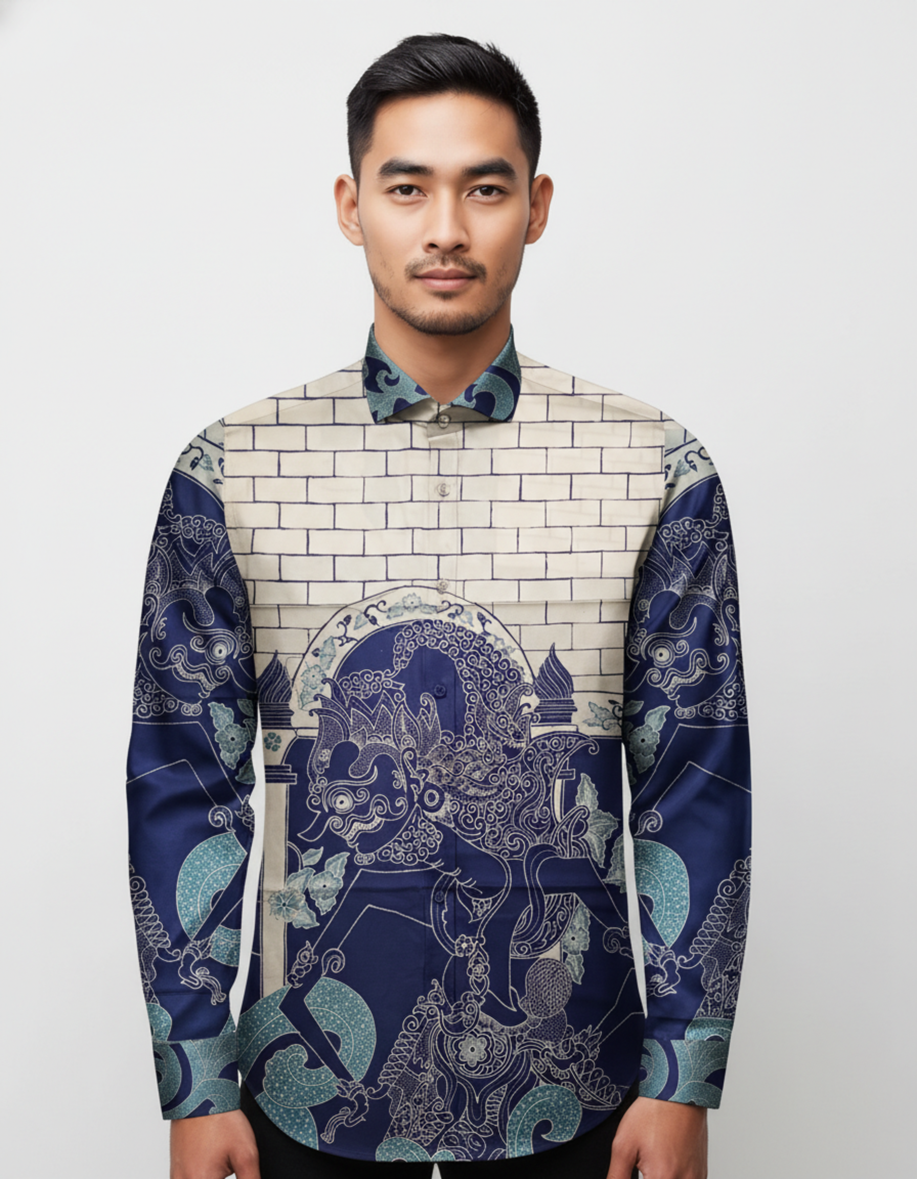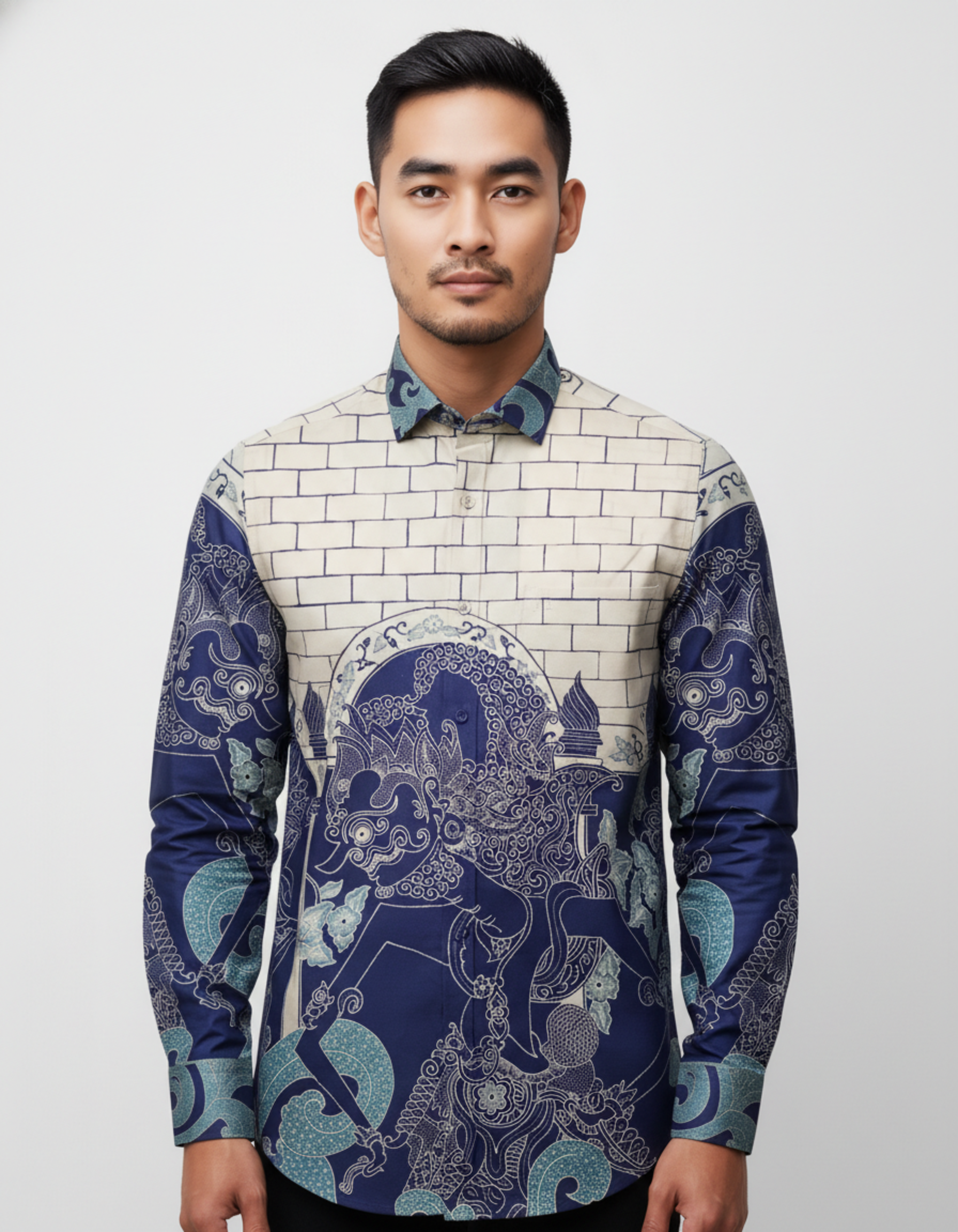 Warna biru indigo yang dalam kami pilih untuk melambangkan lautan kebijaksanaan dan ketenangan, sementara semburat kremnya menjadi penyeimbang yang membumi. Dituangkan di atas lembar kain katun primissima yang halus dan sejuk, setiap detailnya terasa hidup dan bernapas.