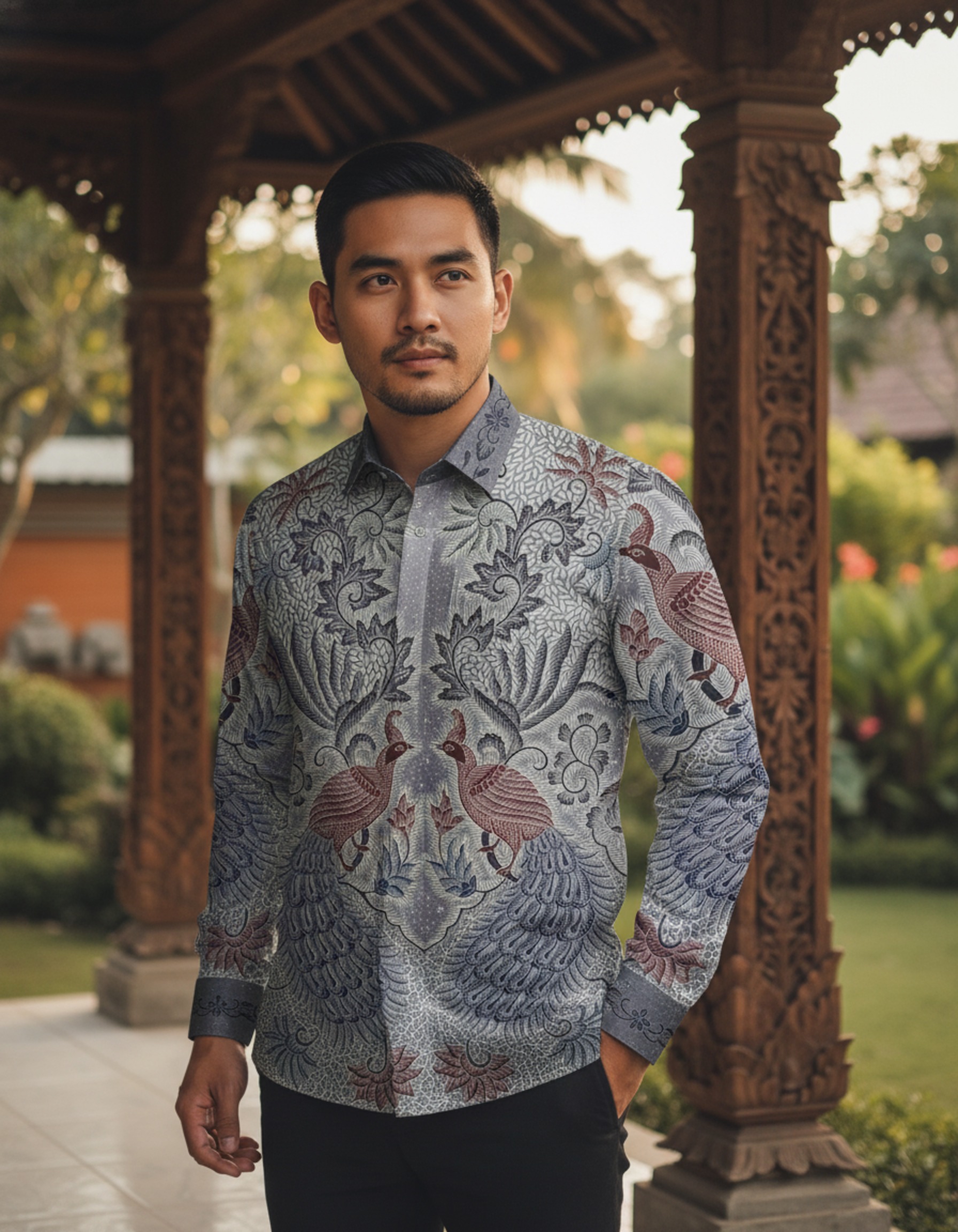 Dituangkan di atas kelembutan katun primissima pilihan, kain ini terasa nyaman di kulit, membiarkan setiap motifnya bernapas dan bercerita dengan leluasa. Kami membayangkannya menjadi sebuah kemeja yang menemani Anda di hari-hari istimewa, membawa aura ketenangan dan wibawa yang tak lekang oleh waktu.