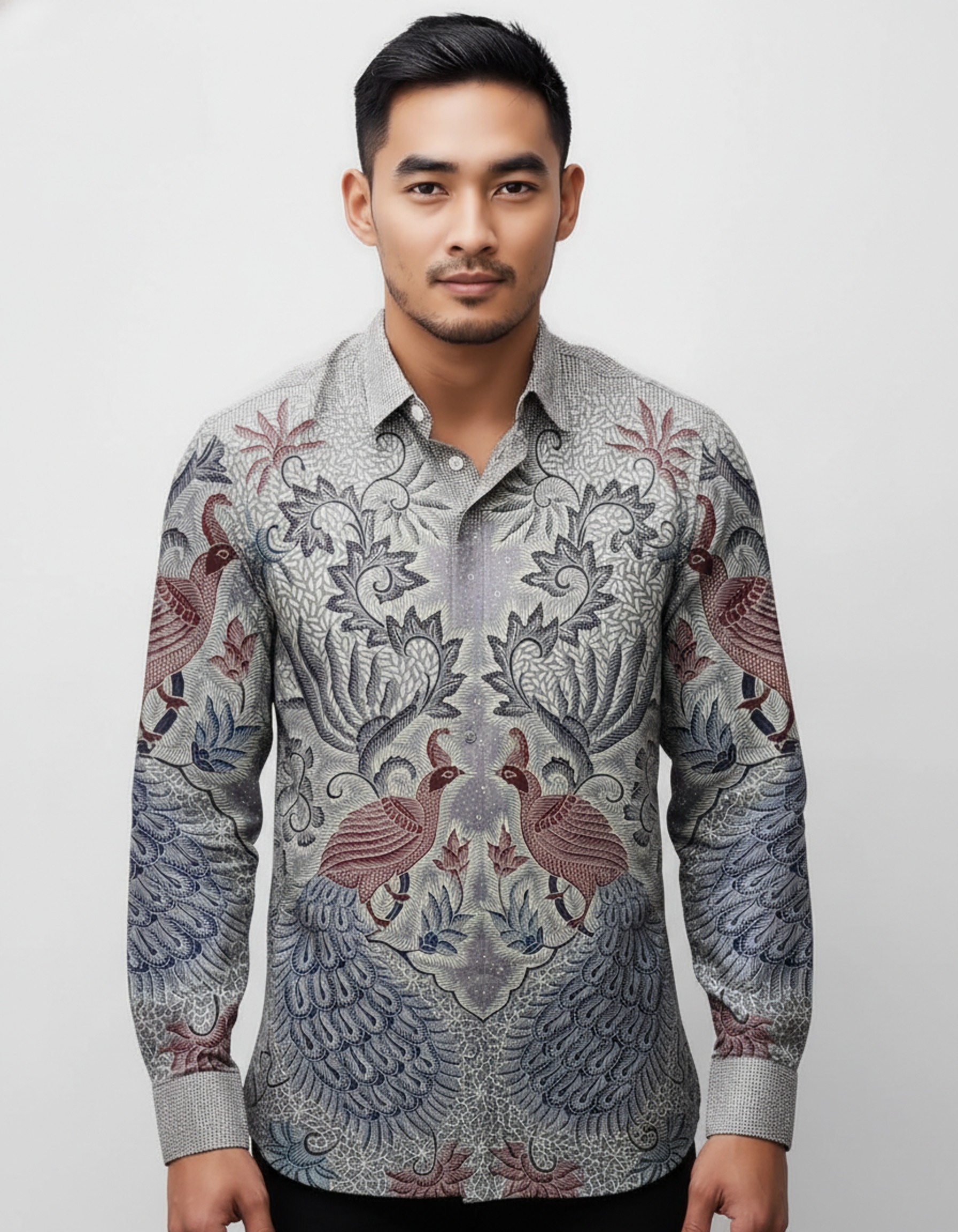Setiap helai kain adalah sebuah kanvas, dan di atasnya, kami melukiskan sebuah doa dalam bentuk sepasang merak yang saling berhadapan dengan anggun. Ini bukan sekadar pakaian, tapi sebuah cerita yang menanti untuk dikenakan.